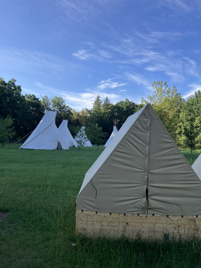 Během letních prázdnin organizujeme také tábory. Nabízíme čtrnáctidenní pobytový tábor v přírodě, kde děti nocují ve stanech a týpí, a zároveň příměstské tábory zaměřené především na přírodovědu a sportovní aktivity.
